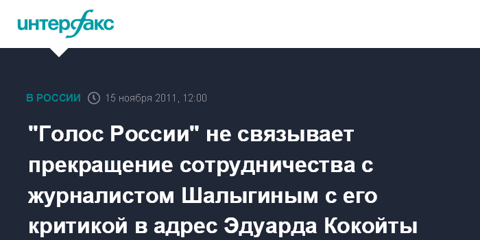 "Голос России" не связывает прекращение сотрудничества с журналистом Шалыгиным с его критикой в адрес Эдуарда Кокойты