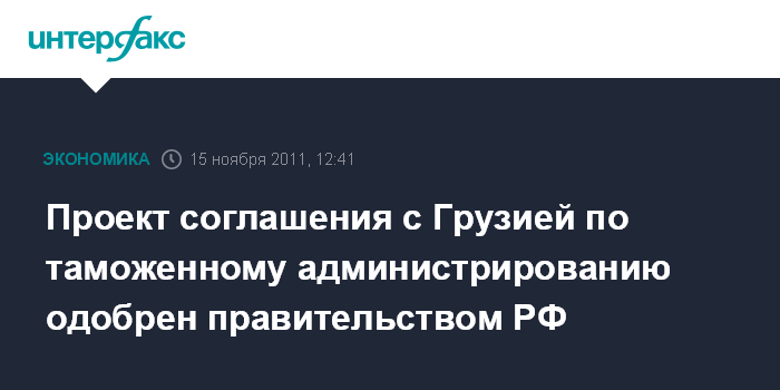 Москва. 15 ноября. INTERFAX.RU - Правительство РФ одобрило проект соглашения с кабинетом министров Грузии об основных принципах механизма таможенного администрирования и мониторинга торговли товарами.