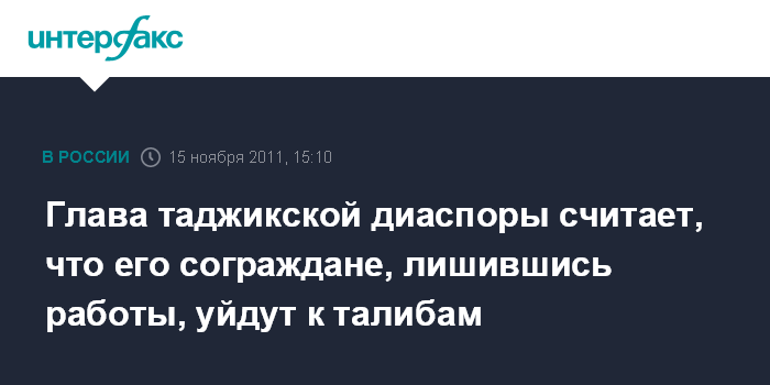 "Я так это представляю, что будет возвращен миллион таджиков в Таджикистан, их семьям нечего будет есть, не будет ни муки ни хлеба, и они уйдут в горы, к талибам, так как вынуждены будут искать кусок хлеба для своих семей. И тогда не будет границы между Таджикистаном и Афганистаном, между Узбекистаном и Таджикистаном, и граница будет двигаться к России", - считает глава диаспоры.