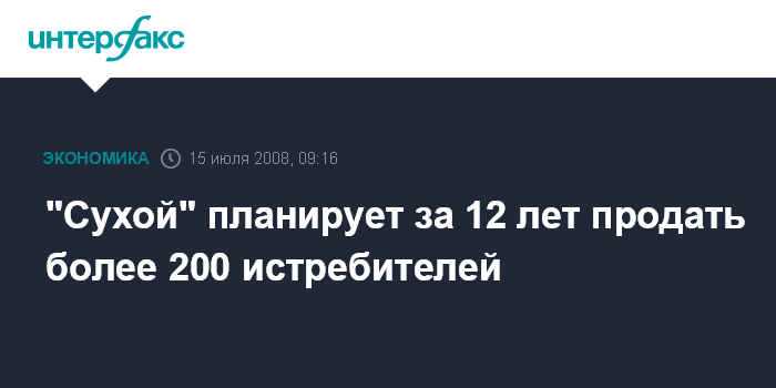 "Сухой" планирует за 12 лет продать более 200 истребителей