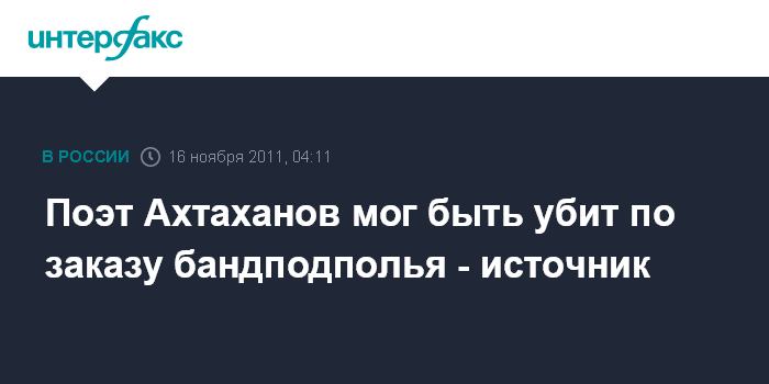 Москва. 16 ноября. ИНТЕРФАКС - Убийство поэта Руслана Ахтаханова, скорее всего, было заказным, сообщил "Интерфаксу" в среду источник в правоохранительных органах.