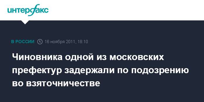 Москва. 16 ноября. INTERFAX.RU - Начальник управления экономики, промышленности и перспективного развития префектуры Восточного округа Москвы подозревается в получении взятки почти в 700 тыс. рублей, сообщили "Интерфаксу" в пресс-службе ГУ МВД России по Москве.