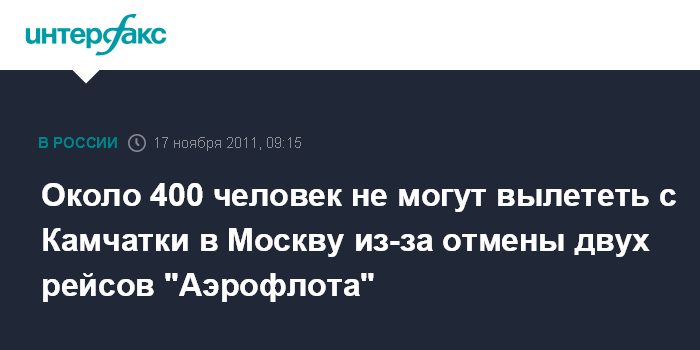 Петропавловск-Камчатский. 17 ноября. INTERFAX.RU - Сразу два авиарейса "Аэрофлота" по маршруту Петропавловск-Камчатский - Москва отменены 16 и 17 ноября.