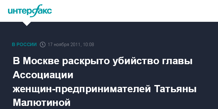 В Москве раскрыто убийство главы Ассоциации женщин-предпринимателей Татьяны Малютиной