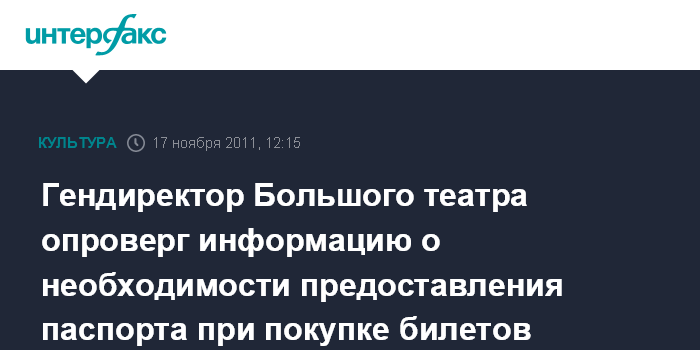 Гендиректор Большого театра опроверг информацию о необходимости предоставления паспорта при покупке билетов