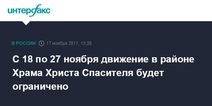 С 18 по 27 ноября движение в районе Храма Христа Спасителя будет ограничено