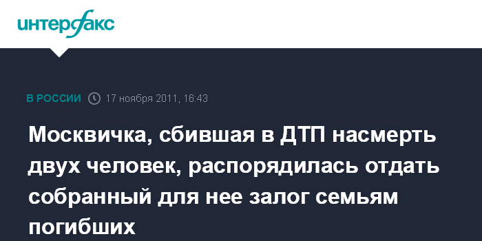 Москвичка, сбившая в ДТП насмерть двух человек, распорядилась отдать собранный для нее залог семьям погибших