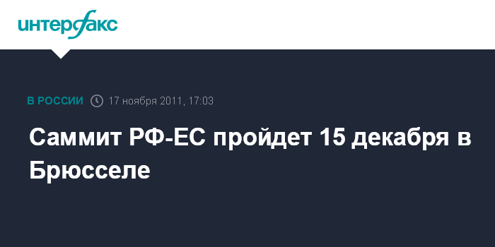 Саммит РФ-ЕС пройдет 15 декабря в Брюсселе