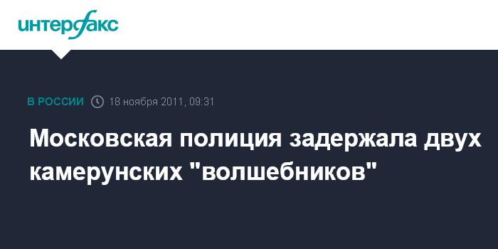 Москва. 18 ноября. INTERRFAX.RU - Два камерунца, обещавших при помощи волшебства увеличить количество денег, задержаны на юго-востоке Москвы благодаря бдительному предпринимателю, сообщил "Интерфаксу" источник в правоохранительных органах.