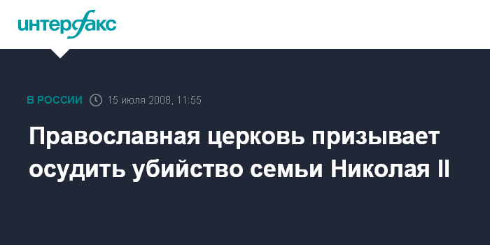 Москва. 15 июля. INTERFAX.RU - Власти современной России должны назвать убийство семьи последнего императора Николая П преступлением и осудить его, считают в Русской православной церкви.