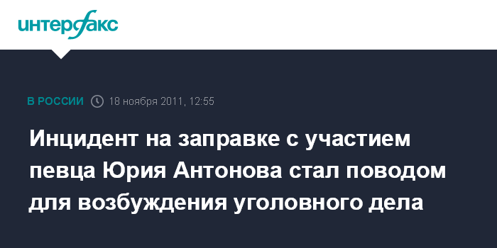Инцидент на заправке с участием певца Юрия Антонова стал поводом для возбуждения уголовного дела