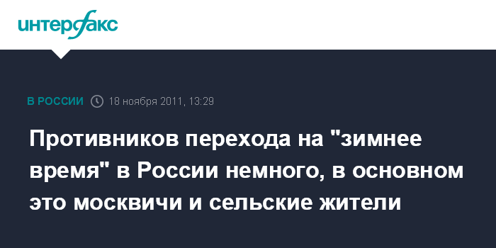 Москва. 18 ноября. INTERFAX.RU - Отмена "зимнего" времени воспринята россиянами положительно и не принесла большинству граждан технических неудобств, показал опрос.