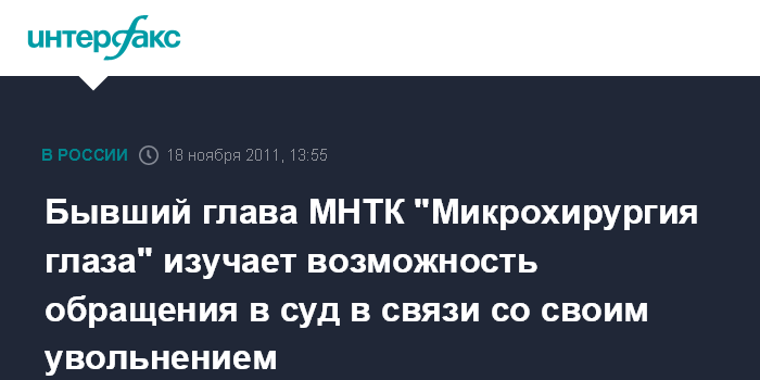 Бывший глава МНТК "Микрохирургия глаза" изучает возможность обращения в суд в связи со своим увольнением