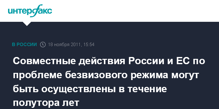 Совместные действия России и ЕС по проблеме безвизового режима могут быть осуществлены в течение полутора лет