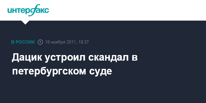 Санкт-Петербург. 18 ноября. INTERFAX.RU - Боец-националист Вячеслав Дацик в пятницу устроил дебош в Красногвардейском районном суде Петербурга, сообщили "Интерфаксу" в пресс-службе регионального управления службы судебных приставов.
