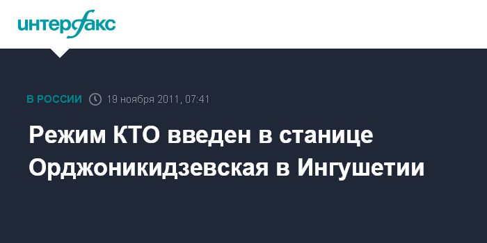 Назрань. 19 ноября. ИНТЕРФАКС-ЮГ - Решением оперативного штаба Ингушетии в станице Орджоникидзевской Сунженского района республики утром в субботу введен режим контртеррористической операции (КТО).