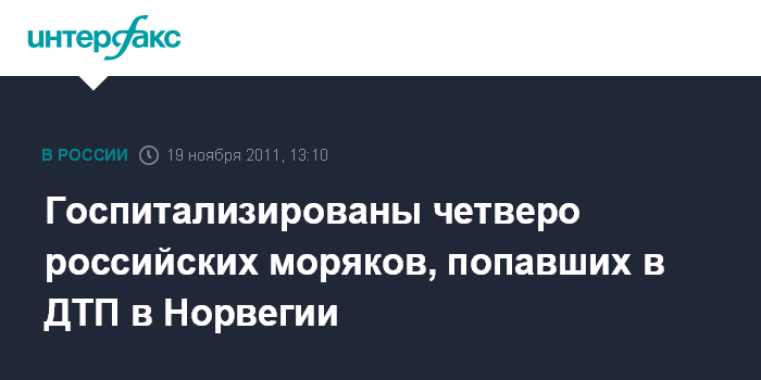 Госпитализированы четверо российских моряков, попавших в ДТП в Норвегии