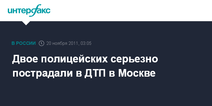 Москва. 20 ноября. ИНТЕРФАКС - Двое сотрудников московской полиции получили тяжелые травмы после того, как их автомобиль протаранил внедорожник, сообщили "Интерфаксу" в пресс-службе ГУ МВД России по Москве.