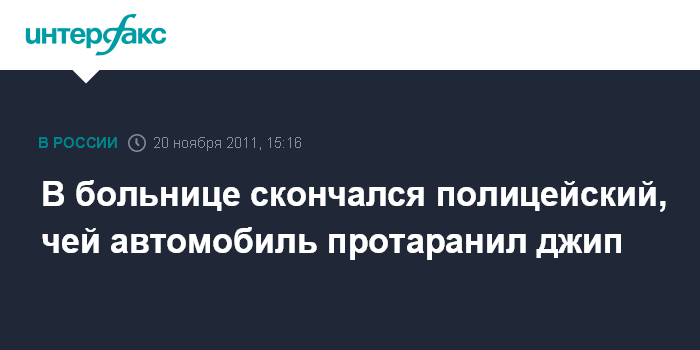 В больнице скончался полицейский, чей автомобиль протаранил джип