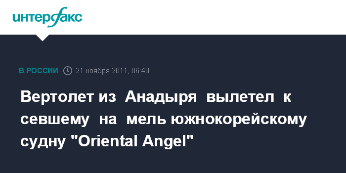 Вертолет из Анадыря вылетел к севшему на мель южнокорейскому судну "Oriental Angel"