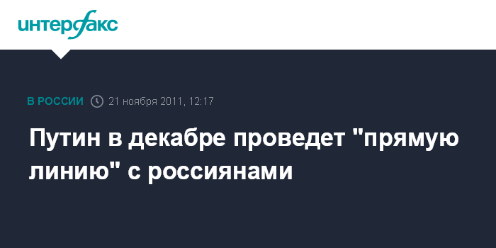 Москва. 21 ноября. INTERFAX.RU - Премьер-министр России Владимир Путин проведет в декабре традиционную "прямую линию" с согражданами, сообщил "Интерфаксу" в понедельник пресс-секретарь главы правительства Дмитрий Песков.