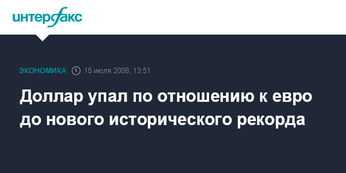 Москва. 15 июня. INTERFAX.RU - Доллар упал относительно евро и иены в ходе торгов до нового исторического рекорда - в $1,6038, сообщило агентство Bloomberg. Причиной падения называются ожидания выступления главы Федеральной резервной системы (ФРС) Бена Бернанке и министра финансов США Генри Полсона в Конгрессе на заседании, посвященном негативному состоянию финансового рынка страны.