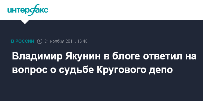Владимир Якунин в блоге ответил на вопрос о судьбе Кругового депо