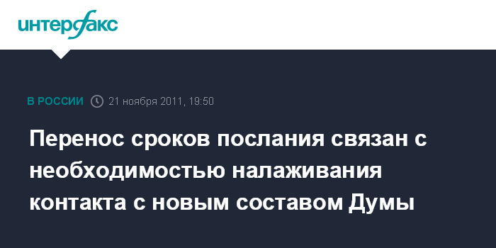 Перенос сроков послания связан с необходимостью налаживания контакта с новым составом Думы