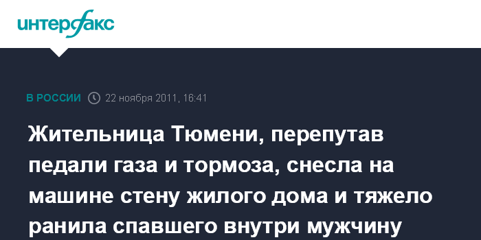 Жительница Тюмени, перепутав педали газа и тормоза, снесла на машине стену жилого дома и тяжело ранила спавшего внутри мужчину
