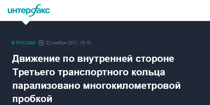 Движение по внутренней стороне Третьего транспортного кольца парализовано многокилометровой пробкой