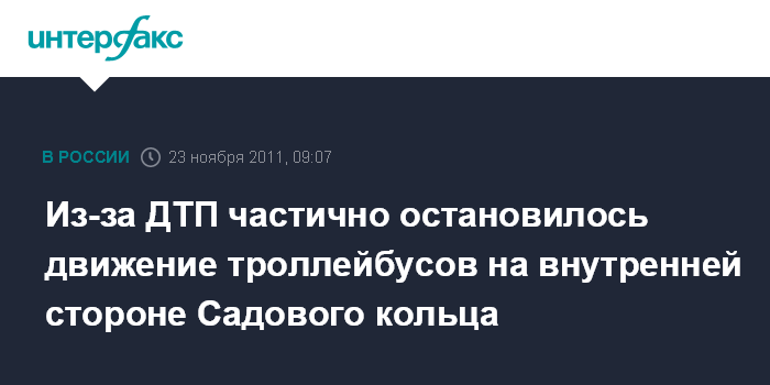 Москва. 23 ноября. INTERFAX.RU – В среду утром столкновение троллейбуса и легкового автомобиля частично остановило движение троллейбусов на внутренней стороне Садового кольца в районе Малой Бронной улицы.