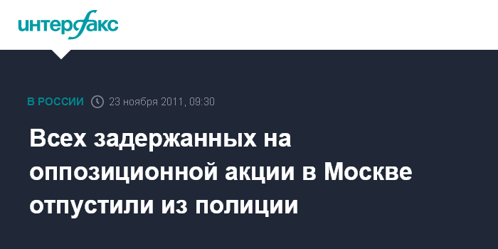 Москва. 23 ноября. INTERFAX.RU - Участники незаконной акции на Триумфальной площади, задержанные накануне, после составления протоколов об административном правонарушении были отпущены из полиции, сообщил "Интерфаксу" источник в правоохранительных органах.