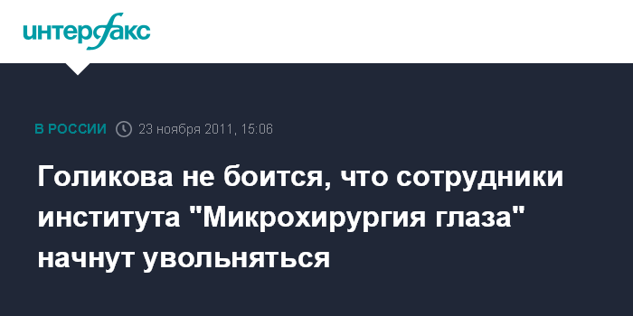 Голикова не боится, что сотрудники института "Микрохирургия глаза" начнут увольняться