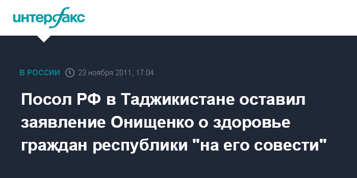 Посол РФ в Таджикистане оставил заявление Онищенко о здоровье граждан республики "на его совести"