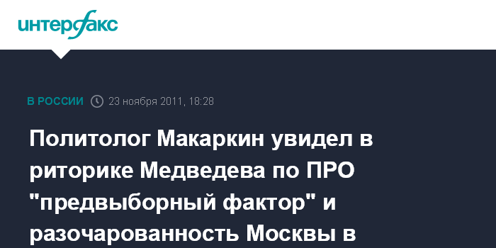 Политолог Макаркин увидел в риторике Медведева по ПРО "предвыборный фактор" и разочарованность Москвы в "перезагрузке"
