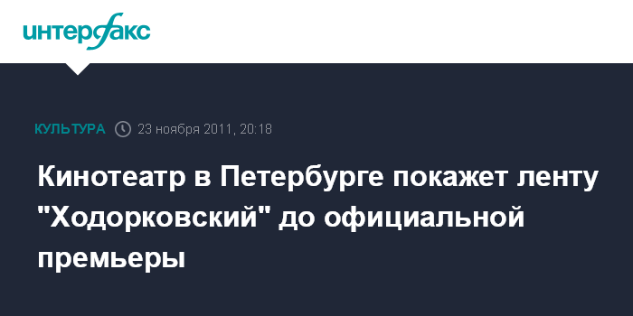 Санкт-Петербург. 23 ноября. INTERFAX.RU - Предпремьерный показ документального фильма Кирилла Туши "Ходорковский" пройдет в петербургском кинотеатре "Мираж Синема", сообщила "Интерфаксу" арт-директор проекта "Киноклуб" (официального дистрибьютора картины в России) Ольга Паперная в среду.