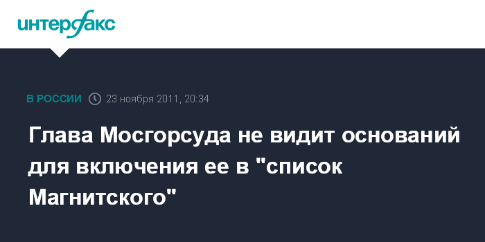 Глава Мосгорсуда не видит оснований для включения ее в "список Магнитского"