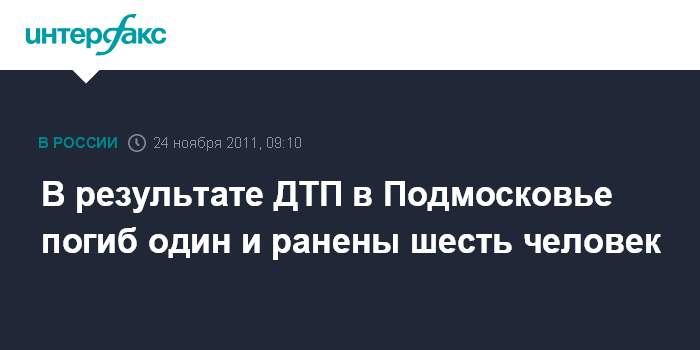 Москва. 24 ноября. INTERFAX.RU - Один человек погиб и шестеро получили травмы в результате столкновения автомобиля "скорой помощи" и иномарки на западе Подмосковья, сообщил "Интерфаксу" источник в правоохранительных органах.