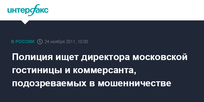 Полиция ищет директора московской гостиницы и коммерсанта, подозреваемых в мошенничестве