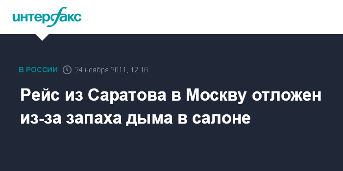 Между тем, гендиректор ОАО "Саратовские авиалинии" (СарАвиа) Александр Боков сообщил агентству "Интерфакс-Поволжье", что "в 10:30 при подготовке к вылету рейса Саратов-Внуково после запуска силовой установки самолета и включения систем кондиционирования воздуха в салоне появился запах дыма".