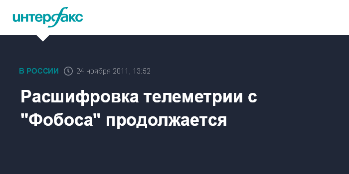 Москва. 24 ноября. INTERFAX.RU - В НПО им. Лавочкина продолжают работать над расшифровкой телеметрической информации, полученной европейской станцией слежения с российской межпланетной станции "Фобос-Грунт".