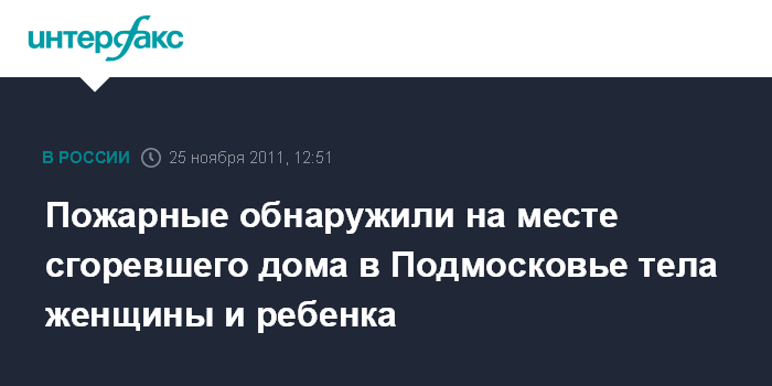 "По предварительным данным, на месте обнаружены обгоревшие тела двоих погибших - женщины и ребенка", - сообщил "Интерфаксу" источник в правоохранительных органах Московской области.