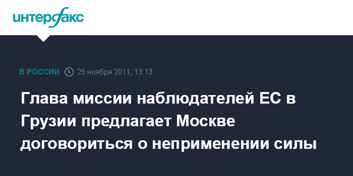 Глава миссии наблюдателей ЕС в Грузии предлагает Москве договориться о неприменении силы