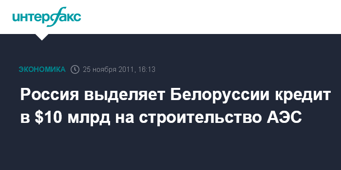 Россия выделяет Белоруссии кредит в $10 млрд на строительство АЭС