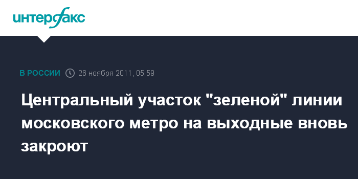 Центральный участок "зеленой" линии московского метро на выходные вновь закроют