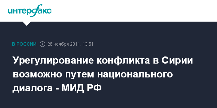 Урегулирование конфликта в Сирии возможно путем национального диалога - МИД РФ