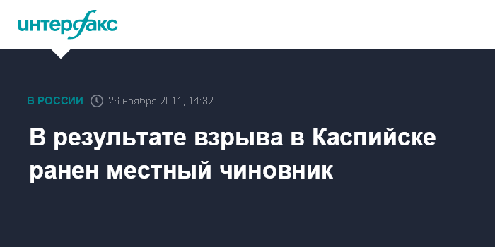 Махачкала. 26 ноября. INTERFAX.RU - По предварительным данным в субботу в Каспийске был взорван автомобиль начальника городского БТИ Эфенди Шихбабаева. "Чиновник получил серьезное ранение", - сообщил "Интерфаксу" источник в МВД Дагестана. Как сообщил собеседник агентства, в машине находился еще один пассажир, он не пострадал.