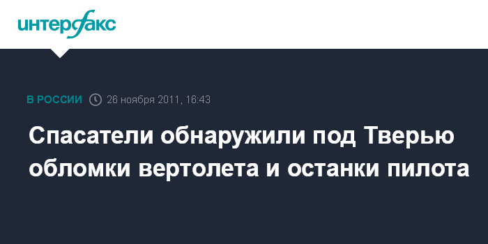 Москва. 26 ноября. INTERFAX.RU - Спасательные группы Росавиации обнаружили обломки вертолета "Робинсон", пропавшего несколько дней назад, сообщили "Интерфаксу" в Росавиации. "Наземные поисковые группы обнаружили обломки вертолета в 29 километрах северо-восточнее Твери. Вертолет лежит разрушенный в лесу. Пилот вертолета погиб. Его останки также обнаружены на месте крушения вертолета", - отметил собеседник агентства.