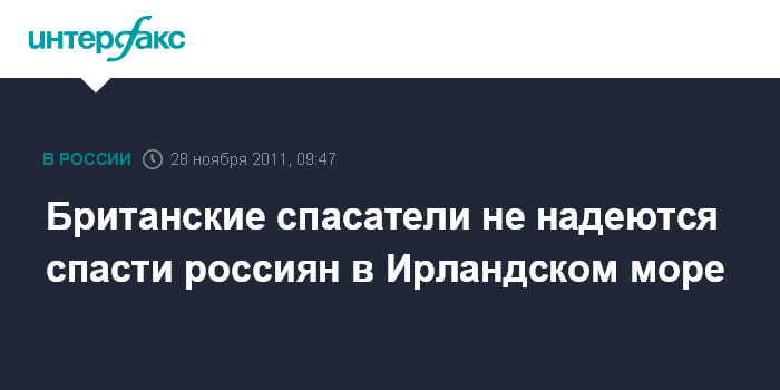 Британские спасатели не надеются спасти россиян в Ирландском море