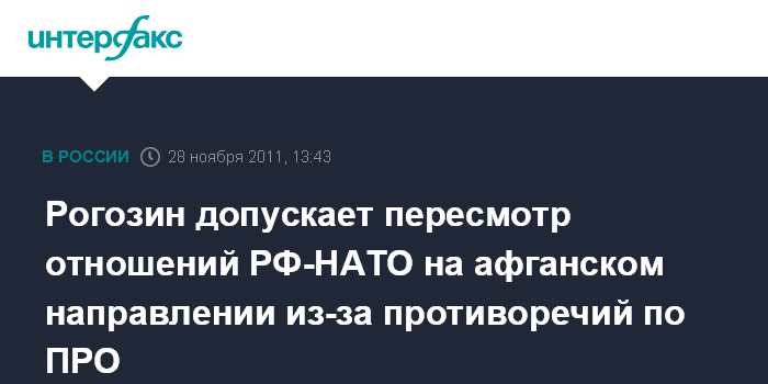 Рогозин допускает пересмотр отношений РФ-НАТО на афганском направлении из-за противоречий по ПРО